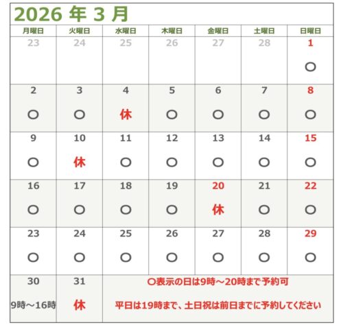 平日は当日19時まで、土日祝は前日まで受け付けております